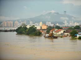 西江洪峰過后退水緩慢,廣西梧州防汛形勢依然嚴峻。