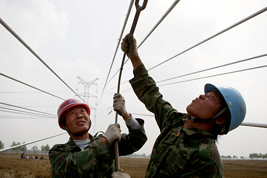 連日來,安徽淮北供電公司員工加緊架設(shè)臨渙電廠到500千伏濉溪變電所的220千伏高壓輸電線路,以確保華東地區(qū)夏日用電高峰和防汛抗旱用電。