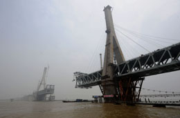 | 武漢天興洲長(zhǎng)江大橋鋼梁架設(shè)穩(wěn)步推進(jìn) |