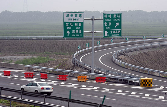 7月2日,一輛小轎車(chē)從京津高速和津薊高速公路的互通處駛過(guò)。目前,京津高速公路主線道路工程即將實(shí)現(xiàn)全線通車(chē)。京津高速公路北起北京朝陽(yáng)區(qū)西直河,終點(diǎn)到達(dá)天津塘沽區(qū),全長(zhǎng)184.4公里。