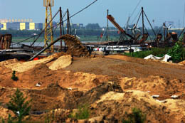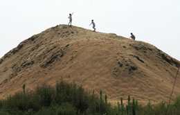 淮河蚌埠市區(qū)段防洪大堤內(nèi)堆積如山的河砂。