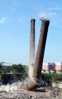 7月5日,河北邢臺方圓集團內(nèi)2座煙囪被拆除。當(dāng)日,河北邢臺市環(huán)保等部門對方圓集團內(nèi)2座煙囪實施拆除。為提高環(huán)境質(zhì)量,今年邢臺市環(huán)保部門計劃對全市100座鍋爐煙囪進行拆除,現(xiàn)已拆除68座。