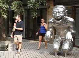 7月13日,幾名外國游客在北京798藝術區(qū)游覽。隨著奧運會的臨近,位于北京市城東大山子的798藝術區(qū)迎來越來越多的中外游客,藝術區(qū)已于7月8日正式啟動奧運接待工作。