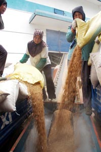 據(jù)國家糧食局權(quán)威統(tǒng)計,截至6月25日,河北、山西、江蘇、安徽、山東、河南、湖北、四川、陜西9個小麥主產(chǎn)省各類糧食企業(yè)累計收購2008年新產(chǎn)小麥2207.4萬噸,比上年同期增加768.2萬噸,其中國有糧食企業(yè)收購2040.1萬噸,占收購總量的92.4%,比上年同期增加704.5萬噸。河北、江蘇、安徽、山東、河南、湖北6省中儲糧委托收儲庫點按最低收購價累計收購1872萬噸,占國有糧食企業(yè)收購總量的91.8%,比上年同期增加657.7萬噸。[詳情]