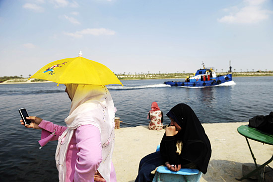 26日,幾名埃及婦女在蘇伊士運河邊的公園內(nèi)休憩。當(dāng)日,埃及蘇伊士運河管理局主席法迪勒在慶祝蘇伊士運河國有化52周年的新聞發(fā)布會上宣布,蘇伊士運河在2007-2008財政年度的收入超過51億美元,同比增長約2 2%。