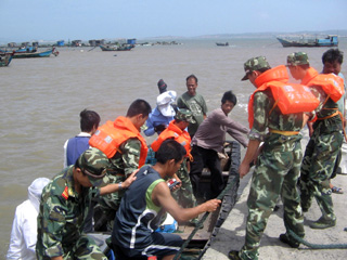 7月27日,福州長樂邊防大隊官兵緊急撤離海上群眾。