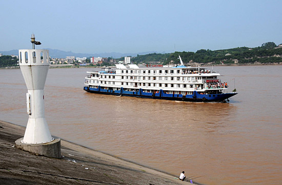 7月28日,一艘游輪進入葛洲壩三江航道。當日,一直持續(xù)較高水位的長江宜昌段水位從前幾天的49.92米下降到47米。據(jù)三峽水文局“水情綜述”表明,近期長江上游不會有較大來水,長江宜昌段水位將持續(xù)緩慢下降。
