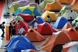 7月30日,人們在帳篷展區(qū)參觀。當日,2008亞洲戶外用品展覽會在南京國際展覽中心開幕。此次展會展覽面積超過2.4萬平方米,包括戶外服裝、鞋帽、登山包、帳篷睡袋、配件等在內(nèi)的17大類、共245個國內(nèi)外知名品牌的戶外運動用品參展。展會期間還將舉辦奧運圣火珠峰傳遞大型圖片展、全國攀巖大賽、戶外服裝秀、戶外用品體驗、戶外產(chǎn)業(yè)與戶外運動系列研討會等活動。