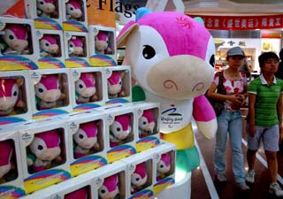 隨著北京殘奧會的日益臨近,殘奧會各種特許商品的銷售也開始進(jìn)入“旺季”。這是在北京市一家殘奧會特許商品經(jīng)銷店內(nèi)擺出的殘奧會吉祥物——“福牛樂樂”。
