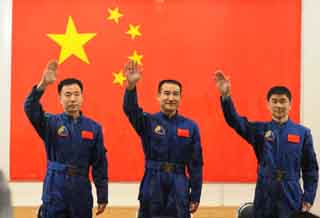 執(zhí)行神七飛行任務(wù)的航天員亮相