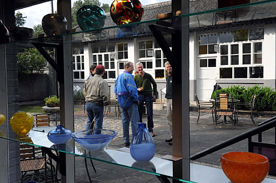 10月5日,幾位外國游客在京郊慕田峪長城腳下的“小園玻璃”工藝特色民俗旅游戶參觀游覽。