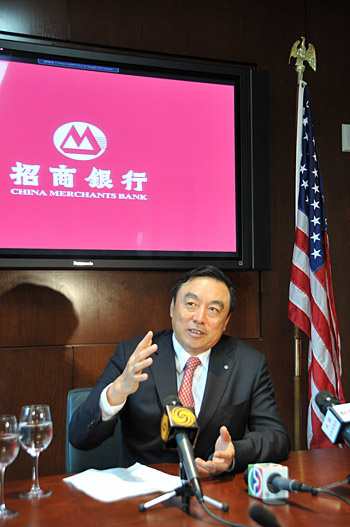 (左圖為10月8日,招商銀行行長馬蔚華在招行紐約分行開業(yè)儀式上發(fā)表講話。)新華社記者 陳剛 攝