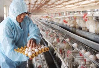11月3日,定興縣田侯村村民李日東在揀雞蛋。 近日,受遼寧大連產(chǎn)“佳之選”雞蛋、山西長治生產(chǎn)的“慈云祥”牌土雞蛋被檢測(cè)出含有三聚氰胺事件的影響,河北省雞蛋價(jià)格經(jīng)歷了持續(xù)5天的低迷。記者在該省定興縣采訪了解到,自10月31日起雞蛋價(jià)格已開始回升。定興縣蛋雞存欄量200多萬只,蛋農(nóng)養(yǎng)雞信心堅(jiān)定。 |