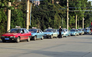 11月13日,出租車在武漢市中北路的一個加氣站前排隊等待加氣。