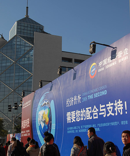 豎立在北京西單街頭有關(guān)第二次全國(guó)經(jīng)濟(jì)普查的大型宣傳牌引人注目(11月15日拍攝)。 第二次全國(guó)經(jīng)濟(jì)普查的對(duì)象是在中國(guó)境內(nèi)從事第二產(chǎn)業(yè)和第三產(chǎn)業(yè)的所有法人單位、產(chǎn)業(yè)活動(dòng)單位和個(gè)體經(jīng)營(yíng)戶。普查的標(biāo)準(zhǔn)時(shí)點(diǎn)是2008年12月31日,時(shí)期資料為2008年度。 | |