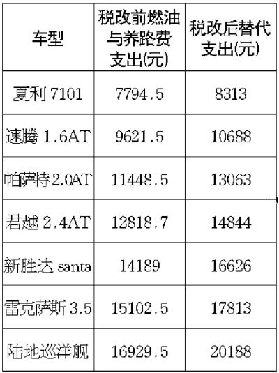 乘用車(chē)稅費(fèi)改革前后成本比較