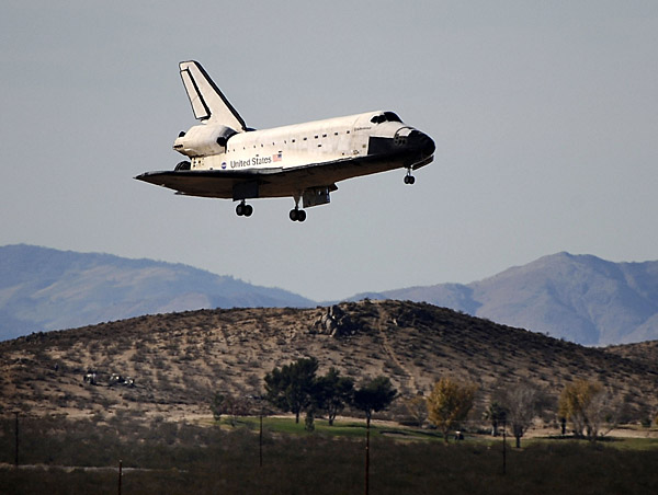 美國(guó)西部時(shí)間11月30日13點(diǎn)25分左右,美國(guó)“奮進(jìn)”號(hào)航天飛機(jī)載著7名宇航員安全降落。由于天氣原因,“奮進(jìn)”號(hào)著陸地點(diǎn)由原定的佛羅里達(dá)州肯尼迪航天中心改為加州愛(ài)德華茲空軍基地。新華社/路透
