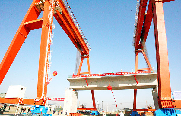 京滬高鐵蘇州段首榀箱梁提梁架設(shè)成功