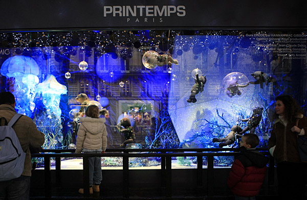 17日,人們在法國巴黎春天百貨商場的圣誕櫥窗前駐足。在16日法國巴黎春天百貨商場男裝部發(fā)現(xiàn)5個未安置引爆裝置的爆炸物后,該商場當(dāng)天已恢復(fù)正常營業(yè)。法國內(nèi)政部長阿利奧—馬里當(dāng)天也就此宣布了一系列安全措施,包括在巴黎、里昂、馬賽等大城市增加安全力量,對大商場周邊停車進行限制等。