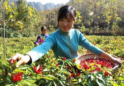 小辣椒紅遍王屋山。11月2日,河南省濟(jì)源市承留鎮(zhèn)上觀村一位農(nóng)婦在采摘辣椒。 近年,濟(jì)源市采取土地流轉(zhuǎn)、土地租賃等形式連片規(guī)模發(fā)展辣椒產(chǎn)業(yè),辣椒連年獲得豐收。新華社發(fā)(苗秋鬧