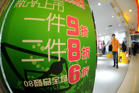 2月10日,沈陽(yáng)一家體育用品專(zhuān)賣(mài)店,促銷(xiāo)宣傳廣告醒目。當(dāng)日,國(guó)家統(tǒng)計(jì)局發(fā)布的數(shù)據(jù)顯示,1月份我國(guó)居民消費(fèi)價(jià)格總水平(CPI)進(jìn)一步回落、總體趨穩(wěn)。1月份CPI同比上漲1.0%,漲幅連續(xù)9個(gè)月呈回落態(tài)勢(shì),與去年12月相比,CPI環(huán)比上漲了0.9%。新華社記者:李鋼