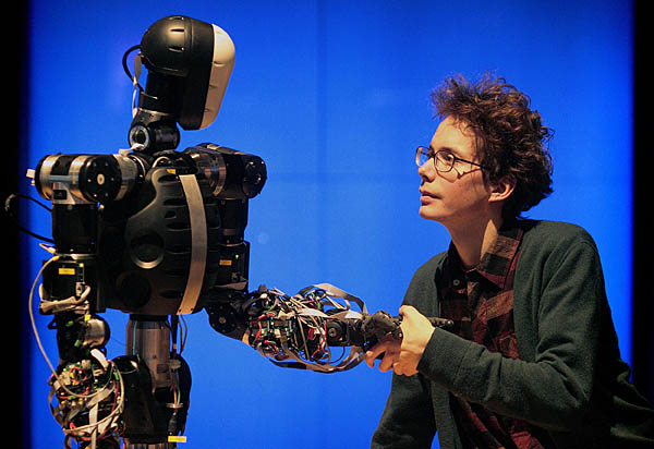 2月17日,在英國倫敦的科學(xué)博物館,一名工作人員與一個名為BERTI的機(jī)器人握手。設(shè)計這個機(jī)器人的初衷是幫助科學(xué)家研究未來人與機(jī)器人如何互相影響。新華社/法新