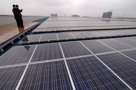 合肥太陽能光伏電站的光伏陣列(2009年3月2日攝)。3月1日,由合肥陽光電源有限公司自主建設(shè)的一座太陽能光伏電站在安徽合肥成功并網(wǎng)發(fā)電。該電站總裝機容量500千瓦,每年可發(fā)電60多萬千瓦時。