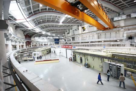 圖為3月16日拍攝的“上海光源”高性能電子儲(chǔ)存環(huán)旁的部分實(shí)驗(yàn)站。 據(jù)悉,世界矚目的我國(guó)重大科學(xué)工程“上海光源”建設(shè)進(jìn)展順利,將按工程計(jì)劃于今年四月底建成并投入使用?偼顿Y約12億元的“上海光源”工程坐落于上海浦東張江高科技園區(qū)內(nèi),占地面積約20萬平方米。同步輻射光源被科學(xué)家稱之為繼電光源、X光源和激光光源之后,第四次為人類文明帶來革命性推動(dòng)的新光源。