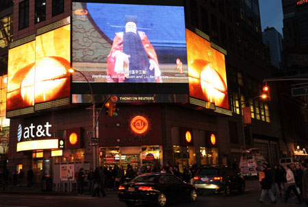 16日晚,美國(guó)紐約曼哈頓時(shí)報(bào)廣場(chǎng)的巨幅電子屏幕播放了中國(guó)國(guó)家大劇院創(chuàng)作的大型新編史詩(shī)京劇《赤壁》。在長(zhǎng)達(dá)45分鐘的時(shí)間里,成千上萬的美國(guó)民眾和各國(guó)游客在這個(gè)被稱為“世界的十字路口”的地標(biāo)性地帶,通過電子媒介近距離感受了中華文化的無窮魅力。此舉是在全世界傳播中國(guó)文化形式上一次大膽而成功的嘗試。 一名自稱“馬克·吐溫老鄉(xiāng)”的美國(guó)人頗有感觸地說:“源遠(yuǎn)流長(zhǎng)的中華文化對(duì)中國(guó)走向強(qiáng)盛形成了一個(gè)強(qiáng)大支撐。我從《赤壁》這出戲中發(fā)現(xiàn),中國(guó)人早在2000多年前就在政治、軍事和外交等方面表現(xiàn)出了極高的智慧! 《赤壁》的藝術(shù)魅力和現(xiàn)場(chǎng)氣氛也感染了美國(guó)哥倫比亞藝術(shù)家音樂公司董事長(zhǎng)胡安·雅克·塞斯勃隆。他說:“我相信世界上大多數(shù)人看不懂京劇,但在時(shí)報(bào)廣場(chǎng)這個(gè)地方,在世界需要中國(guó)、熱議中國(guó)的時(shí)候上演的這場(chǎng)獨(dú)一無二的中國(guó)文化展示活動(dòng),會(huì)給每一個(gè)見證者留下不可磨滅的印象。” |