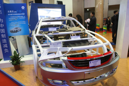 3月19日,一家參展商展出用塑料零件代替金屬零件、通過(guò)減輕自重達(dá)到節(jié)能減排效果的汽車模型。當(dāng)日,2009中國(guó)國(guó)際節(jié)能減排和新能源科技博覽會(huì)在北京展覽館舉行。展會(huì)以“節(jié)能減排、振興經(jīng)濟(jì)、科技創(chuàng)新、開(kāi)拓未來(lái)”為主題,來(lái)自國(guó)內(nèi)外的200多家企業(yè)和機(jī)構(gòu)參展。