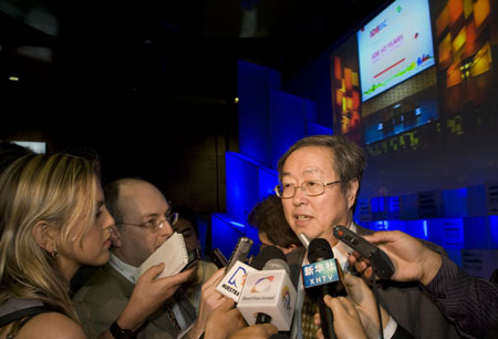 3月28日,中國人民銀行行長周小川(右)在哥倫比亞第二大城市麥德林出席美洲開發(fā)銀行高峰論壇期間接受記者采訪。當(dāng)天,周小川在美洲開發(fā)銀行高峰論壇上發(fā)表主題講話時說,中國加入美洲開發(fā)銀行將進(jìn)一步擴(kuò)大中國和拉美的雙邊合作關(guān)系,雙方不斷深化的友好合作將增強中國和拉美國家共同抵御金融危機(jī)的能力。
