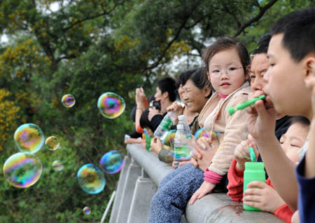 4月6日,市民們?cè)诎自粕巾數(shù)挠^景臺(tái)上觀賞游玩。4月4日到6日,廣州的許多市民來(lái)到白云山、云臺(tái)花園等風(fēng)景秀麗、空氣清新的郊外去野營(yíng)、遠(yuǎn)足和踏青,以此方式來(lái)度過(guò)三天長(zhǎng)假。新華社記者:周文杰