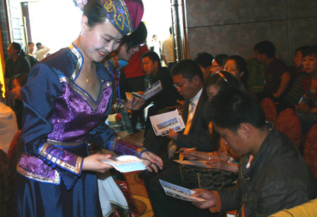 4月13日,內(nèi)蒙古希拉穆仁天堂草原旅游景區(qū)工作人員在向旅行社代表發(fā)放旅游消費(fèi)券。隨著旅游旺季的到來(lái),內(nèi)蒙古相繼出臺(tái)一系列旅游景區(qū)、酒店優(yōu)惠政策,開(kāi)展向社會(huì)團(tuán)體和市民發(fā)放免費(fèi)門(mén)票、旅游券活動(dòng),積極鼓勵(lì)引導(dǎo)旅游消費(fèi)。