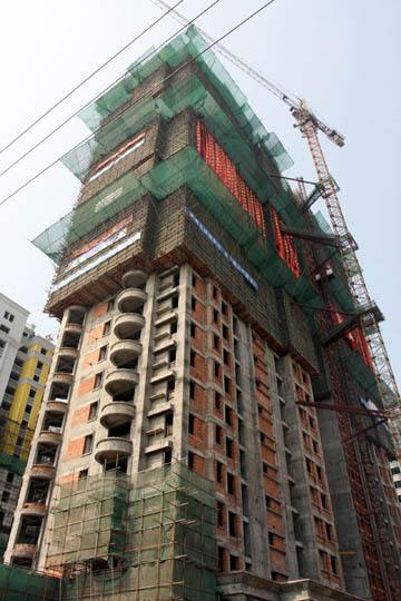 這是安徽省合肥市經(jīng)濟(jì)技術(shù)開發(fā)區(qū)內(nèi)一處正在建設(shè)中的商品房(4月14日攝)。 4月13日,國家統(tǒng)計(jì)局發(fā)布的2009年1至3月全國房地產(chǎn)市場運(yùn)行情況顯示,2009年一季度,安徽省商品房銷售面積為635.71萬平方米,銷售額為203.86億元,居中部地區(qū)之首。