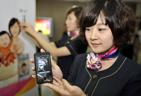 5月21日,工作人員在演示TD-SCDMA技術的可視移動電話。 當日,我國自主創(chuàng)新、具有自主知識產權的移動TD-SCDMA網(wǎng)絡在濟南正式商用。十一運組委會同時在濟南宣布,十一運所有場館將實現(xiàn)基于TD-SCDMA技術的3G網(wǎng)絡、WLAN無線局域網(wǎng)絡和2G網(wǎng)絡的“三網(wǎng)合一”,打造“數(shù)字全運會”。