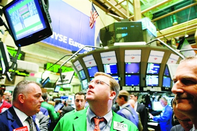 6月1日,股票交易員聚集在美國紐約證券交易所內(nèi)交易通用公司股票的交易亭周圍。由于利好的經(jīng)濟(jì)數(shù)據(jù)令越來越多的投資者相信全球經(jīng)濟(jì)衰退的最嚴(yán)峻時(shí)期已經(jīng)過去,1日紐約股市三大股指的漲幅全都超過了2.5%。