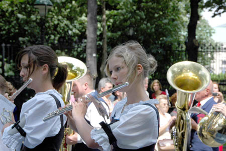 6日,女樂手在奧地利首都維也納市中心舉行的第30屆維也納銅管樂節(jié)上表演。來自奧地利、波蘭、斯洛伐克、列支敦士登等國的40支銅管樂隊(duì),共約2000名樂手參加了當(dāng)天的演奏及列隊(duì)行進(jìn)表演。