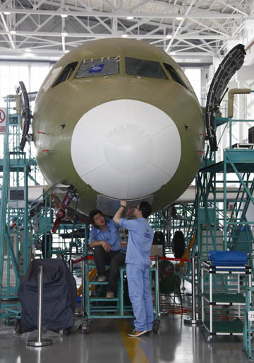 6月6日,一架ARJ21新支線飛機在上海飛機制造有限公司的裝配車間進行總裝。 ARJ21系列飛機是我國第一個外銷歐美發(fā)達國家的飛機產(chǎn)品,目前國內(nèi)外訂單為208架。其中,美國最大飛機租賃公司通用電氣金融航空服務有限公司(GECAS)訂購了25架。根據(jù)飛機生產(chǎn)和適航取證的計劃,我國計劃于2010年開始向用戶交付首架飛機。