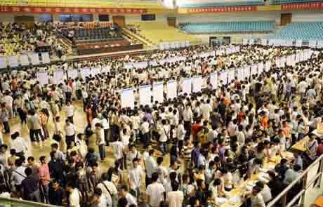 6月8日,江西省國(guó)資委所屬國(guó)有企業(yè)在省體育館聯(lián)合舉行高校畢業(yè)生招聘會(huì),現(xiàn)場(chǎng)共有120多家企業(yè)參加,提供就業(yè)崗位3400余個(gè),吸引了數(shù)千名求職者前來(lái)應(yīng)聘。圖為招聘會(huì)現(xiàn)場(chǎng)擠滿了求職者。 新華社發(fā)