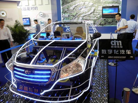 日前,第十三屆中國國際軟件博覽會在北京展覽館舉行,參展企業(yè)500余家,涉及行業(yè)技術(shù)標(biāo)準(zhǔn)、電子政務(wù)、城市管理、軟件與服務(wù)、農(nóng)村信息化建設(shè)、行業(yè)信息化、消費(fèi)電子和工業(yè)設(shè)計(jì)等領(lǐng)域。圖為數(shù)字化汽車展臺吸引觀眾駐足觀看。新華社發(fā)