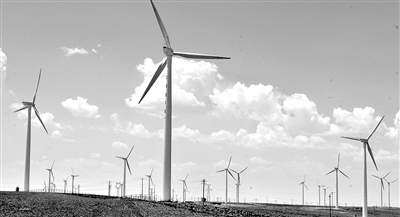 寧夏將大規(guī)模開發(fā)以風(fēng)能、太陽(yáng)能為代表的綠色能源。根據(jù)自治區(qū)政府最新出臺(tái)的新能源發(fā)展規(guī)劃,到2020年,寧夏風(fēng)電總裝機(jī)將達(dá)到500萬(wàn)千瓦以上,建成200萬(wàn)千瓦太陽(yáng)能光伏并網(wǎng)項(xiàng)目,屆時(shí)新能源發(fā)電占全區(qū)電力總裝機(jī)容量的比重達(dá)18%。圖為寧夏太陽(yáng)山風(fēng)力發(fā)電場(chǎng)一角。