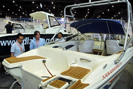7月9日,觀眾在2009中國大連國際游艇展上觀看帆船。當日,為期四天的“2009中國大連國際游艇展覽會”在大連星海會展中心開幕。本次展覽是“2009中國航海日”系列活動之一,展會期間除現(xiàn)場展銷國內(nèi)外廠商生產(chǎn)的游艇外,還將舉行游艇業(yè)論壇及游艇、帆船試乘試駕等活動。 新華社發(fā)