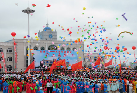 20日上午,前(進(jìn))撫(遠(yuǎn))鐵路開工慶典儀式在黑龍江省撫遠(yuǎn)縣舉行。前撫鐵路正線全長169公里,將于2010年10月建成并通車運(yùn)營,從此結(jié)束“中國東極”撫遠(yuǎn)縣不通鐵路的歷史。