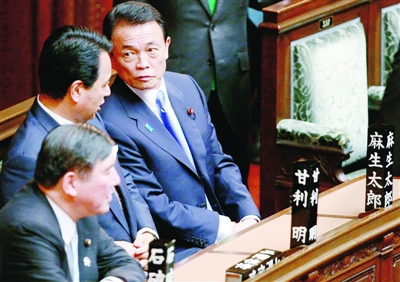 7月21日,日本首相麻生太郎(右)出席在東京國會眾議院舉行的全體會議。當日,日本國會眾議院議長河野洋平在眾議院全體會議上宣讀經(jīng)天皇簽署的“解散詔書”,眾議院正式宣告解散。
