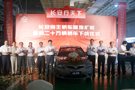 2009年7月20日,歷史又一次見證了中國汽車發(fā)展史上的重要時刻———“長安自主轎車基地擴能暨第二十萬輛轎車下線儀式”在長安渝北汽車制造廠隆重舉行,長安汽車董事長徐留平、長安汽車總經(jīng)理張寶林為長安汽車第20萬輛自主品牌轎車———首輛長安悅翔自動擋車型下線剪彩。