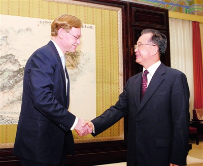 國務(wù)院總理溫家寶1日在中南海紫光閣會(huì)見世界銀行行長佐利克。溫家寶說,中國應(yīng)對(duì)國際金融危機(jī)的宏觀經(jīng)濟(jì)政策和措施是符合實(shí)際的,也是及時(shí)、有力、有效的。中國經(jīng)濟(jì)正處在企穩(wěn)回升的關(guān)鍵時(shí)期,我們不會(huì)改變政策方向。