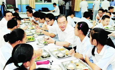這是9月4日,在北京市第三十五中學(xué),溫家寶和同學(xué)們一起共進(jìn)午餐。 |