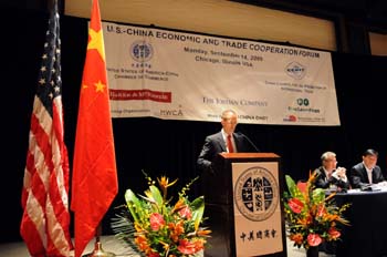 14日,美國商務(wù)部副部長助理蔡瑞德在會上發(fā)表講話。當(dāng)日,美中經(jīng)貿(mào)投資合作論壇在美國芝加哥舉行,中國貿(mào)促會副會長于平率領(lǐng)由167名企業(yè)家組成的中國企業(yè)家代表團(tuán)參加了本次論壇。與會人士一致呼吁在尚未完全克服經(jīng)濟(jì)危機(jī)的形勢下,中美兩國需進(jìn)一步加強(qiáng)經(jīng)貿(mào)合作,為世界經(jīng)濟(jì)的復(fù)蘇做貢獻(xiàn)。新華社記者胡光耀攝 |