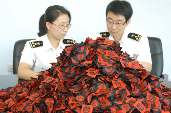 長春海關(guān)所轄琿春海關(guān)日前在商標(biāo)查驗時發(fā)現(xiàn)有WIND-STOPPER字樣標(biāo)識,且相關(guān)企業(yè)不能提供商標(biāo)專用權(quán)合法使用證明。根據(jù)權(quán)利人確認申請,琿春海關(guān)依法扣留了該批貨物,并交由法規(guī)部門查處。