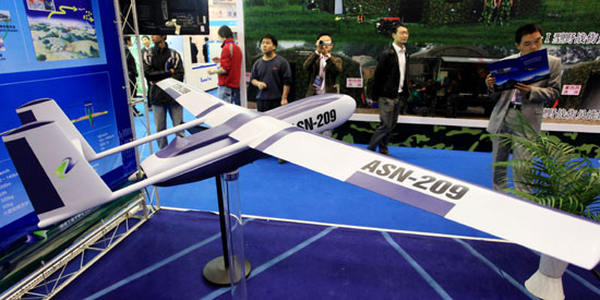 10月12日,在北京舉行的國(guó)際減災(zāi)應(yīng)急技術(shù)設(shè)備博覽會(huì)上,觀眾參觀無(wú)人駕駛飛機(jī)模型。當(dāng)日,為期3天的2009北京國(guó)際減災(zāi)應(yīng)急技術(shù)設(shè)備博覽會(huì)在北京中國(guó)國(guó)際貿(mào)易中心開幕,國(guó)內(nèi)外近200家企業(yè)、上千種各類減災(zāi)救災(zāi)產(chǎn)品亮相博覽會(huì)。新華社發(fā)